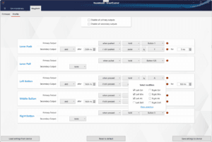 With Heusinkveld SmartControl you have the option to expand the outputs of the lever and the 3 extra buttons to a total of 10 fully customizable outputs. You can configure and customize the outputs using the easy-to-use editor in SmartControl.